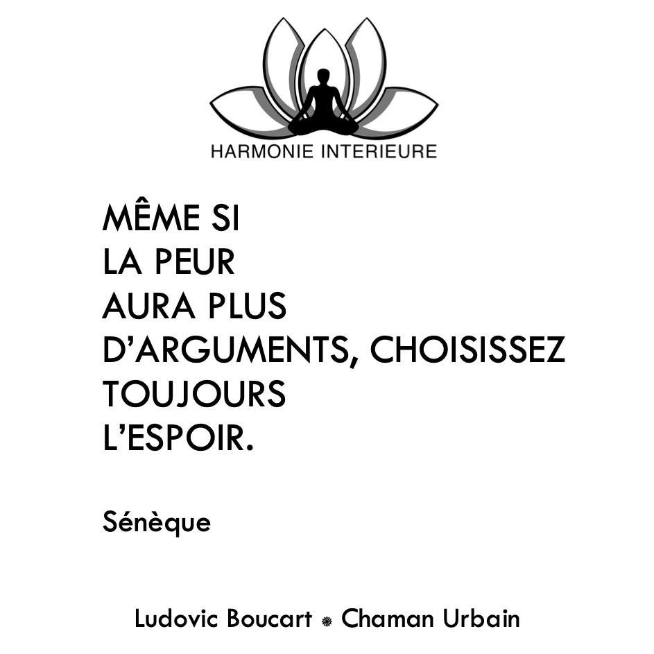 Plus nous nourrissons les peurs, plus elles influencent notre libre arbitre et notre destinée. Choisir de vivre dans l'espoir, détaché des peurs, nous permet de devenir au fil du temps un être de plus en plus libre et en phase avec sa destinée.