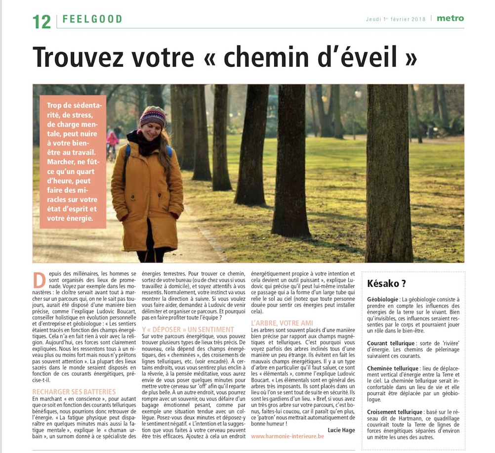 Très chouette article de Lucie Hage dans le METRO de ce matin sur les Chemins d'Eveil mis en place par Ludovic Boucart.